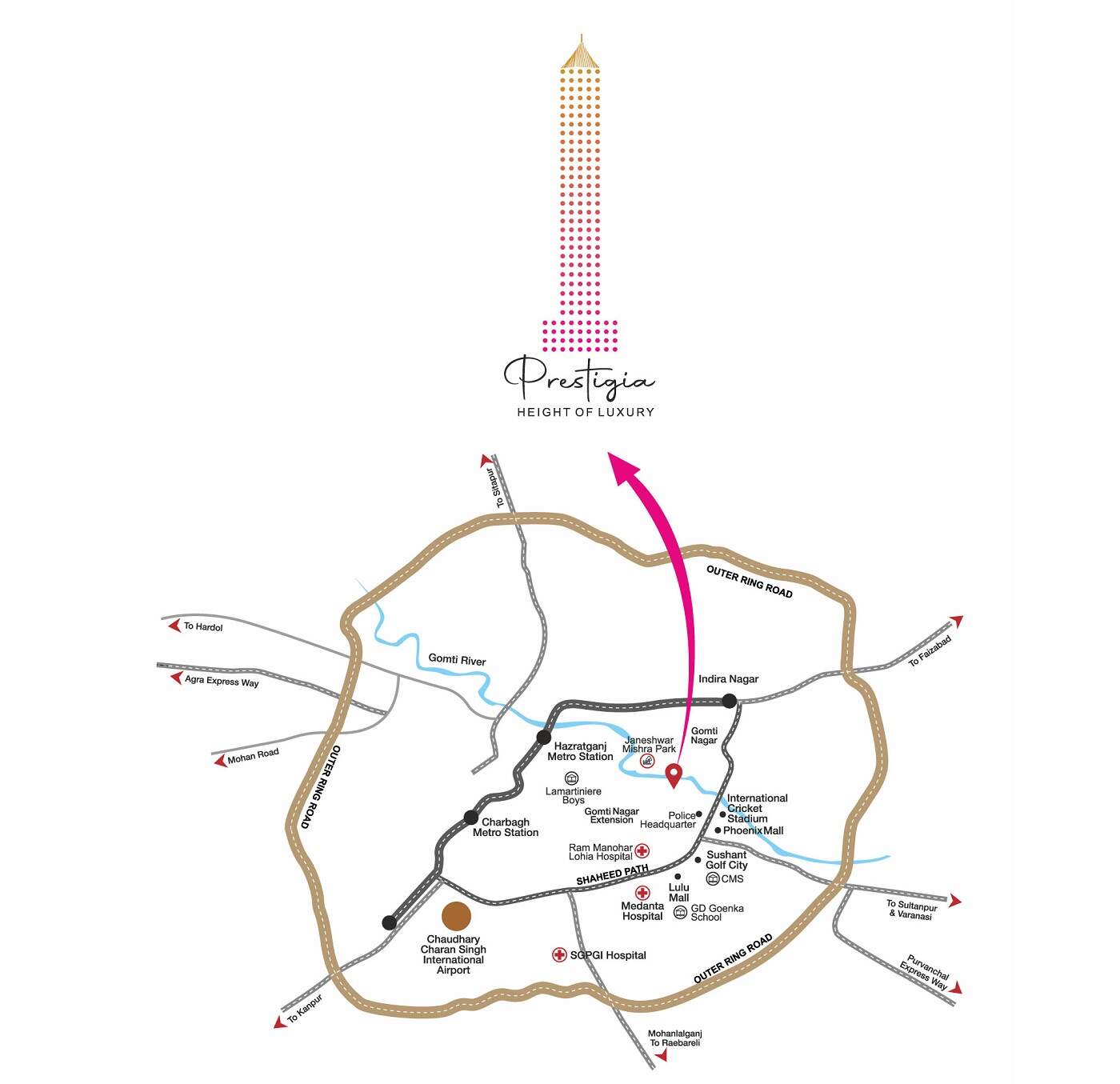 Welcome to BE Prestigia Lucknow, we redefine the concept of luxury living. With just 37 meticulously designed residences, each floor serves as a private sanctuary, ensuring unmatched privacy and elegance. Your home is not just a space, it’s a personal statement of sophistication and individuality. BE Realty Prestigia offers more than just a place to live; it provides an exceptional lifestyle. Residents can indulge in a variety of exclusive amenities, including a private terrace, a state-of-the-art gym, and a peaceful garden retreat. Experience a life of luxury and exclusivity at BE Prestigia Lucknow, where your home mirrors your success and refined taste. Welcome to the pinnacle of opulence at BE Realty Lucknow